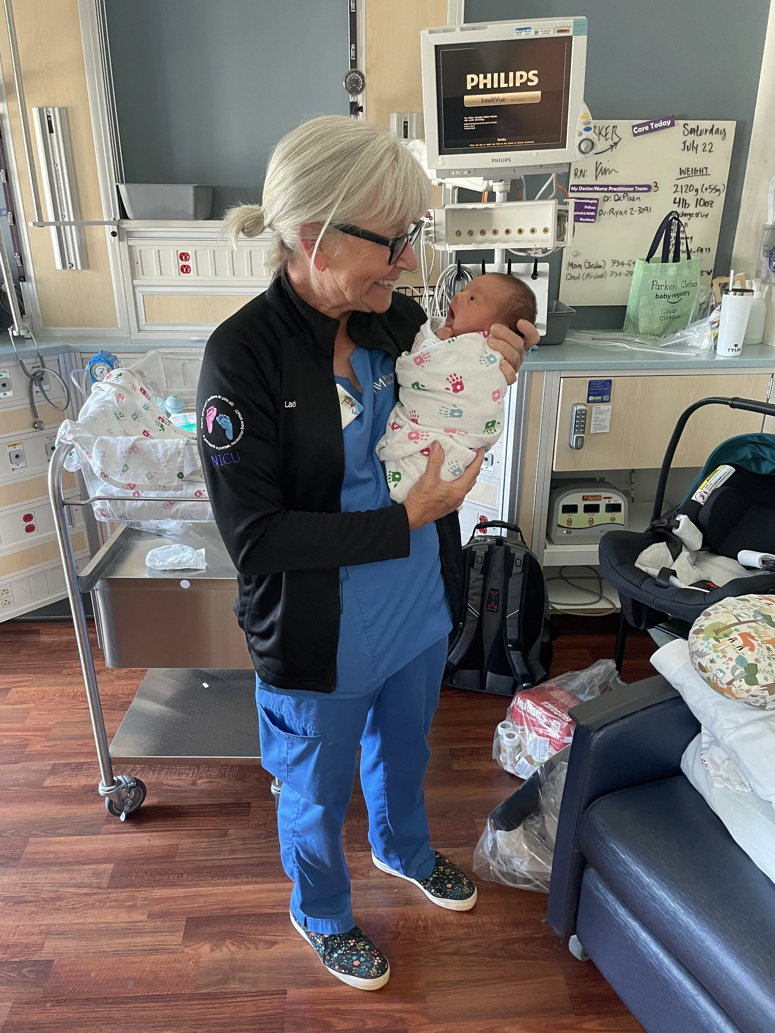 Parker was born six weeks early after a placental abruption and was immediately taken to the NICU. Like most NICU parents, we were overwhelmed and terrified. From the very beginning, Kim met us with calm confidence, patience, and compassion. She answered every question and taught us how to care for our tiny baby, how to feed him, change his diaper, and begin our journey into parenthood. I will never forget Kim kneeling on the floor beside me, gently teaching me how to use a breast pump and reassuring me every step of the way. She was there on our first day of breastfeeding, helping Parker and me navigate the challenges with encouragement and grace.